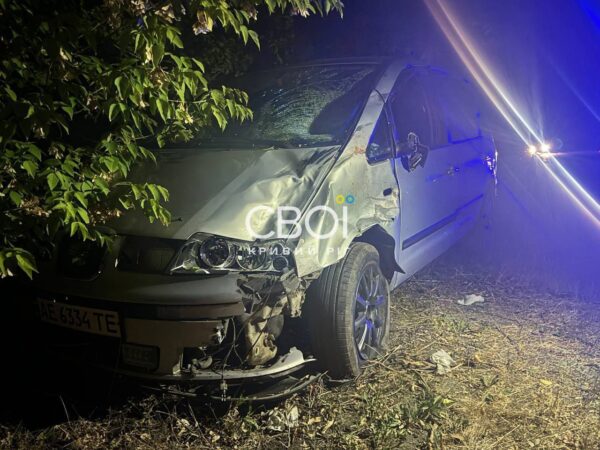 Автівка рухалась з боку Ниви Трудової в напрямку Кривого Рогу, водій підібрав пасажирів і почав вихляти по дорозі і виїхав на зустрічну.