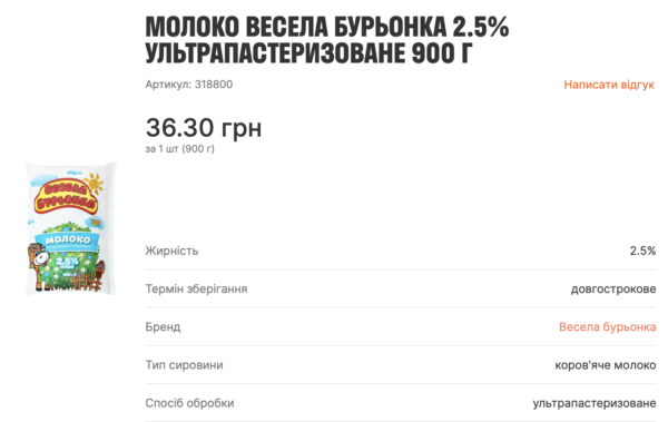 У технічній специфікації фірма вказала пакети молока «Весела бурьонка» вагою 900 г та жирністю 2,5%. Кількість пакетів та вартість кожного ми у документації не знайшли. Тож зробили приблизні підрахунки і ось, що у нас вийшло. 7,5 тонн молока можна вмістити у 8 333 пакети по 900 г. Якщо загальна вартість 336 000 грн, то один пакет може обійтися у 40,32 грн.