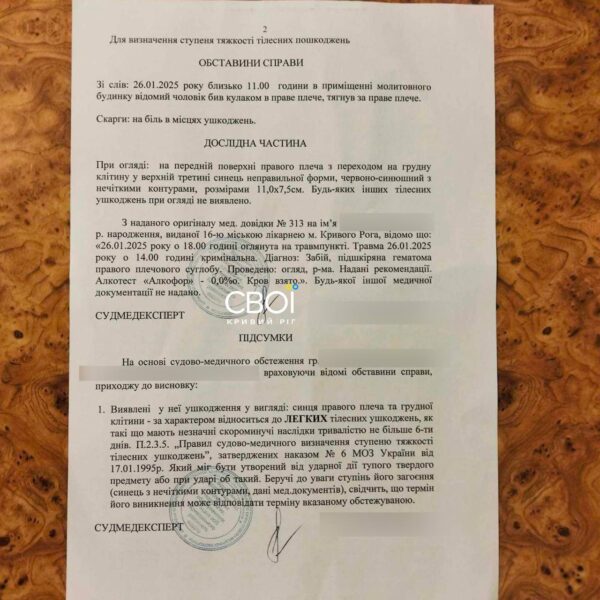 Мешканка Кривого Рогу заявила, що її побили у молитовному домі на очах у дитини