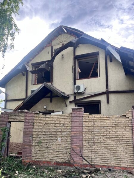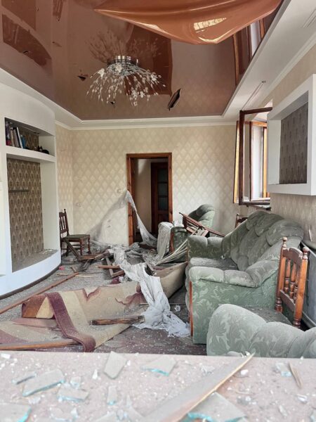 Пошкоджено півтора десятки авто. Вибиті вікна у приватних будинках, багатоповерхівках та лікарні. На місці обстрілу знайшли залишки шрапнелі.