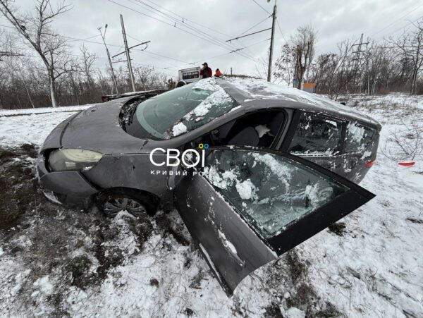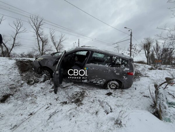 Також дорогою на ПівдГЗК Renault викинуло у кювет та перекинуло. Водій каже, що занесло близько сьомої ранку. Йому швидка не знадобилась, але автівка понівечена.