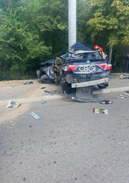 Свідки кажуть, Toyota їхала з боку Дніпра по шосе. На швидкості зачепив Ford – почало крутити авто і занесло у стовп. Водій Ford розповів журналістам СВОЇх: