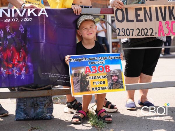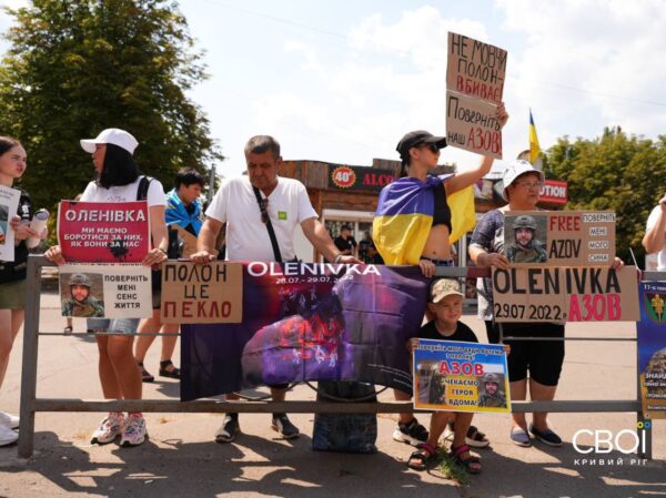 На 96 кварталі криворіжці влаштували акцію пам’яті про теракт в Оленівці. Активісти з криворізького осередку «Центурії» та рідні військовослужбовців вимагають повернути полонених додому, зокрема тих, хто пережив теракт.