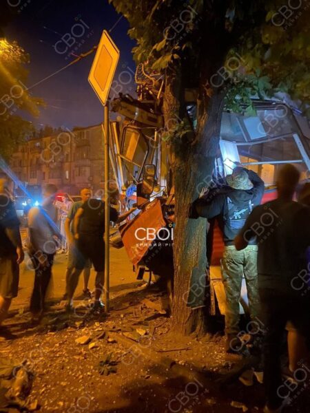 Ввечері 18 червня на проспекті Південний у Кривому Розі трамвай на швидкості зійшов з рейок та влетів у дерево. У вагоні знаходилось 37 пасажирів. 44-річну водійку сильно затисло у кабіні машиніста – її вирізали рятувальники.