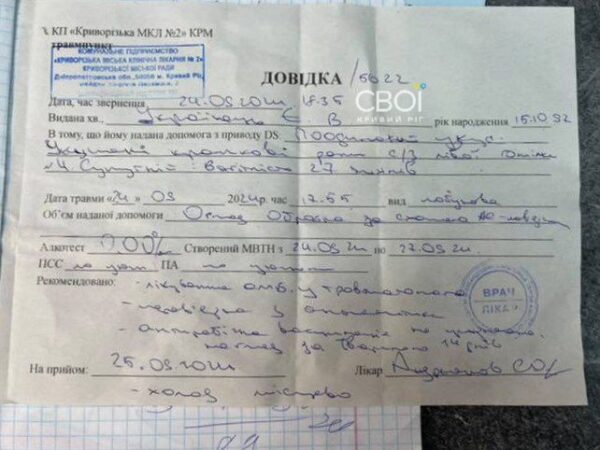 Але найстрашніші побоювання не підтвердились. Єлизавета Українець пройшла амбулаторне лікування у вигляді перев’язок та двотижневого курсу антибіотиків.