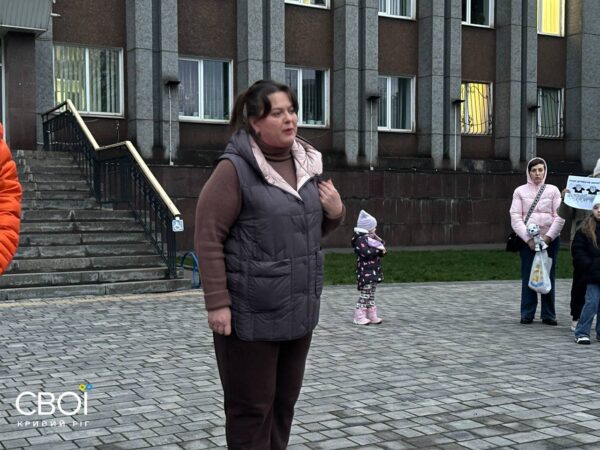 До людей вийшла Антоніна Воробйова – керівниця відділу освіти Інгулецького району. Вона каже, що заяви для продовження контракту від пана Плотнікова не надходило до департаменту – тож обирали людину з резерву.