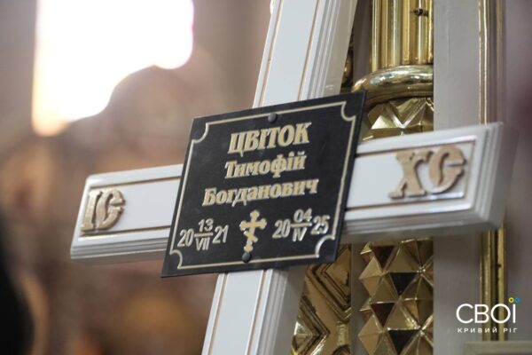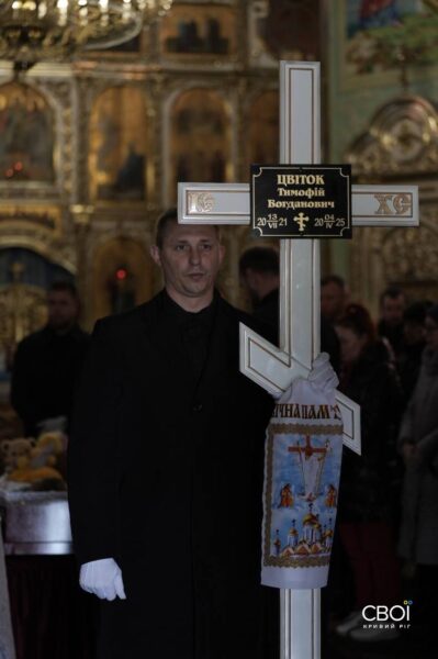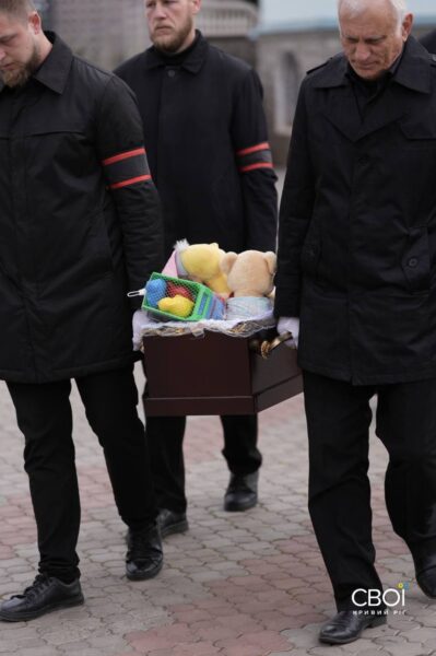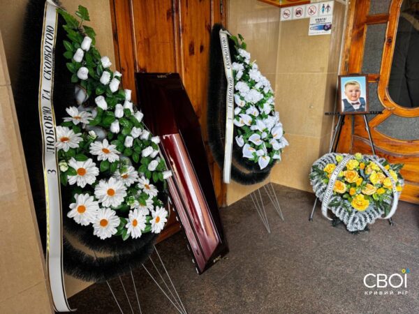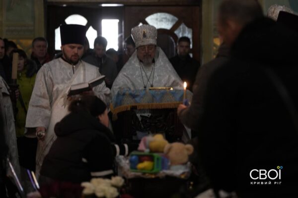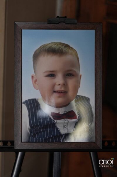 Тимофею было 3 года и 9 месяцев. Мама, дедушка, родственники, знакомые и друзья семьи пришли в Спасо-Преображенский собор, чтобы почтить память самой младшей жертвы российской атаки на Кривой Рог.