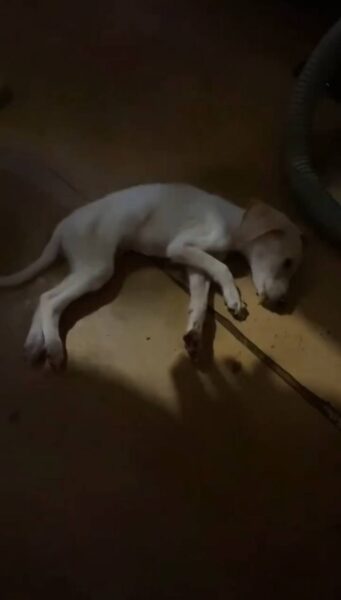 Владелец квартиры нашел животных в крайне тяжелом состоянии. Взрослая собака по кличке Амалия похожа на скелет, а щенок вообще не стоит на лапах и едва дышит.