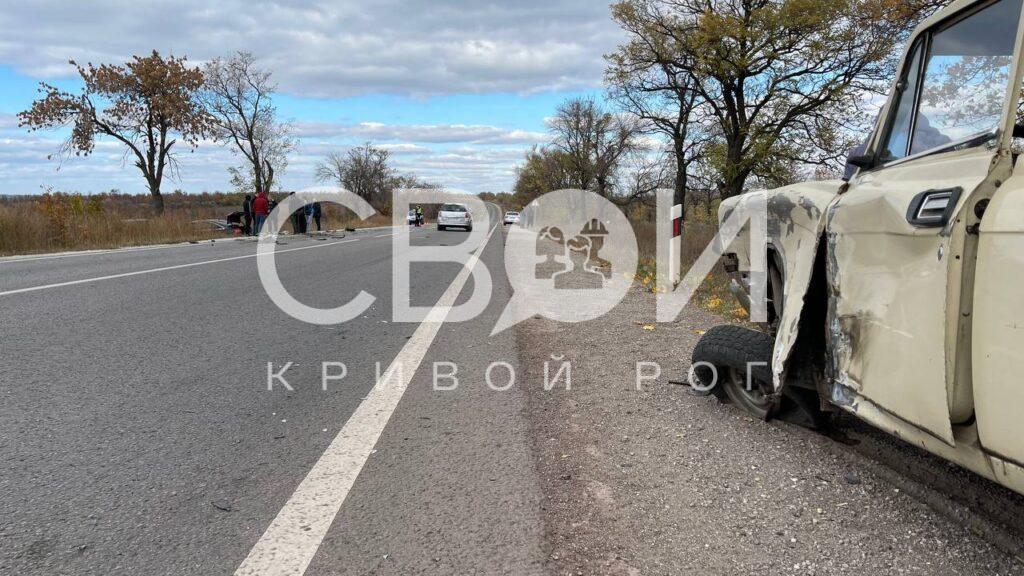 Предварительно, Москович выехал со второстепенной дороги и поворачивал в сторону Кропивницкого. Водитель не пропустил Audi, движущуюся из Кривого Рога. Последняя влетает в Москович, задевает встречный Mitsubishi Lancer и бьет в лоб Lacetti, съезжает в кювет и врезается в Logan.