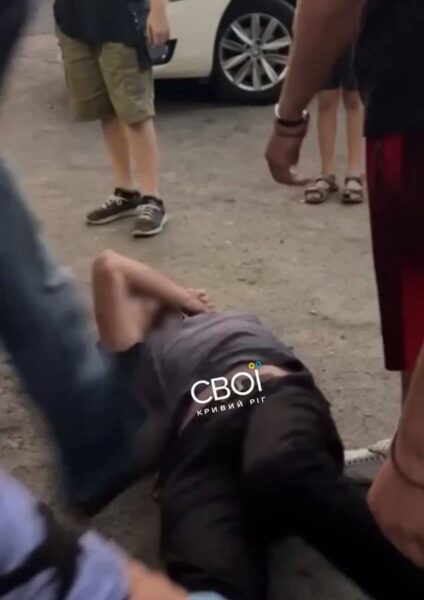 После этого нападавший начал убегать. Толпа догнала и повалила его на землю. Кто-то из толпы вызвал полицию.